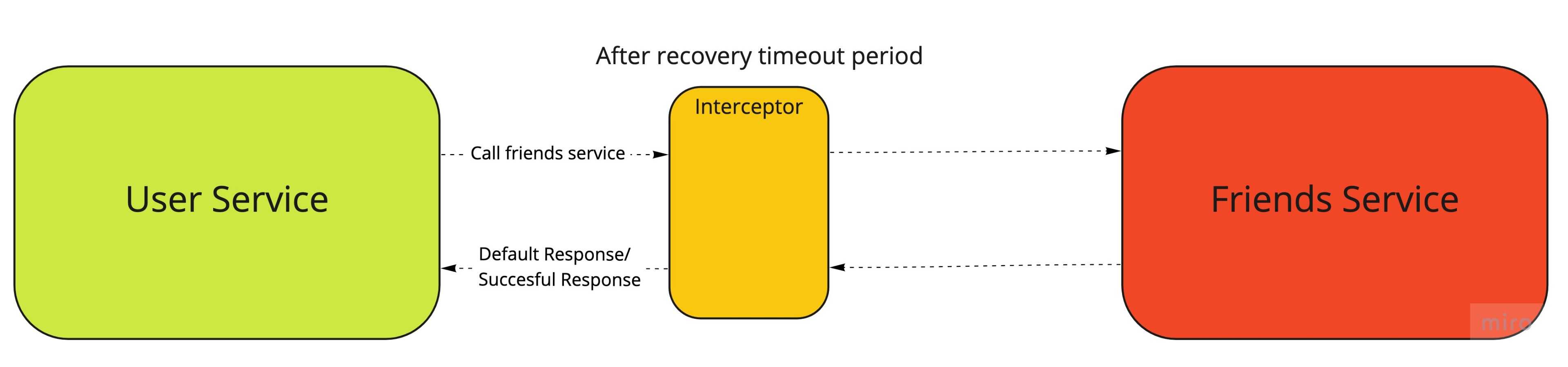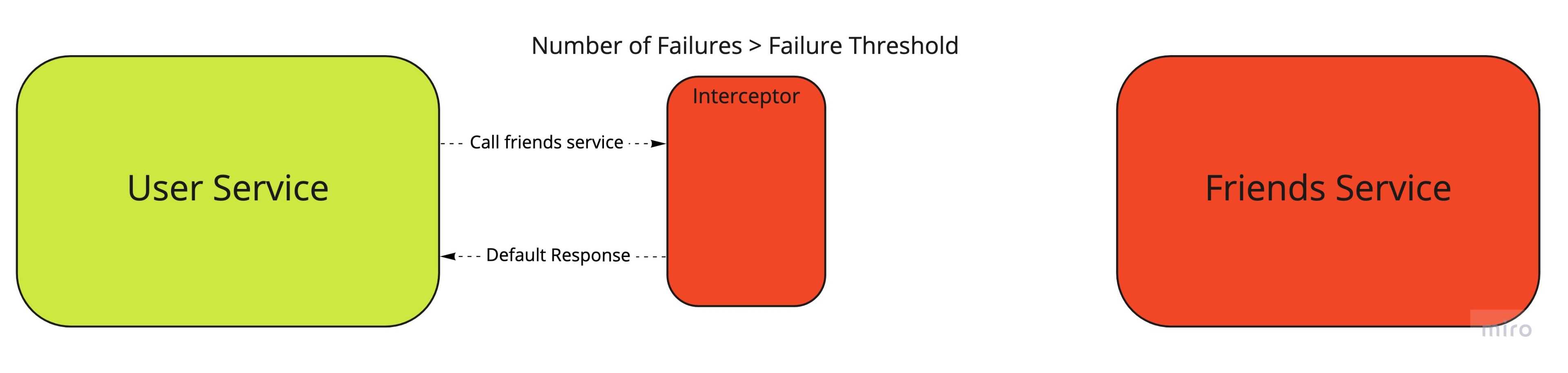 When service A tries to communicate with service_B, it allocates a thread to make that call. There are 2 kinds of failures that can occur while making that call. We use the example of a user service making a call to friends service.